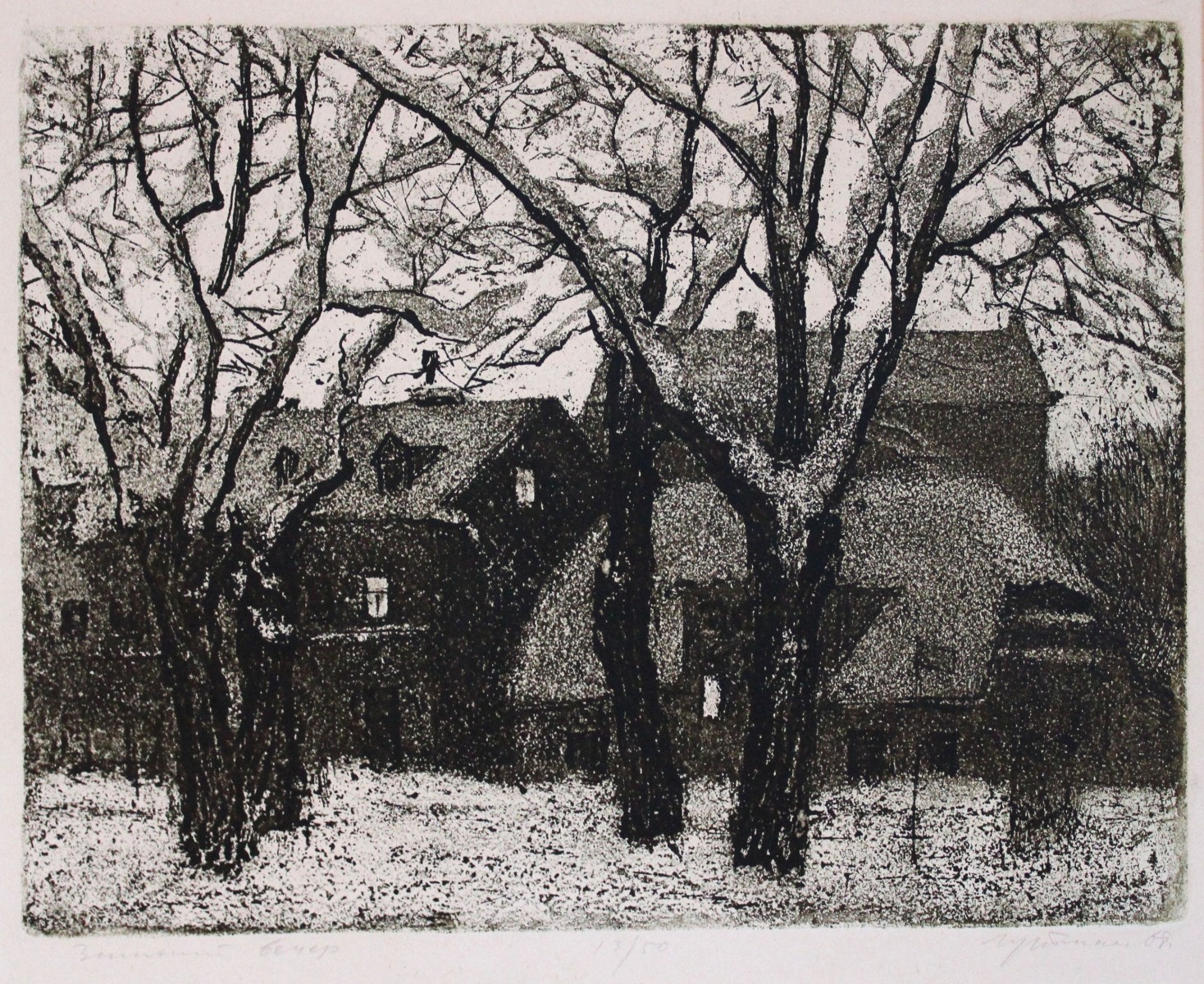 Winter evening. 13/50. 1968, paper, etching, 24,5x31,5 cm