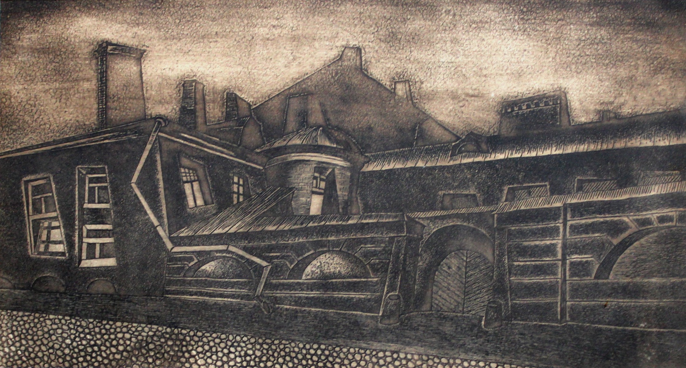 illustration for Dostoevsky's novel "Crime and Punishment" 1969, paper, etching, 15x27 cm