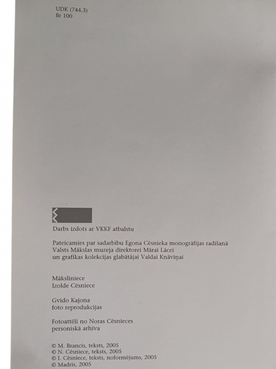 The work is included in the catalog of E.Cēsnieks' works, 2005.