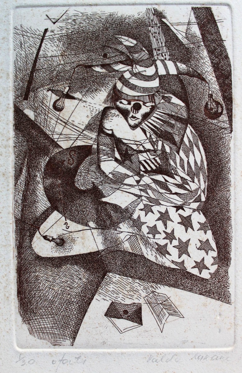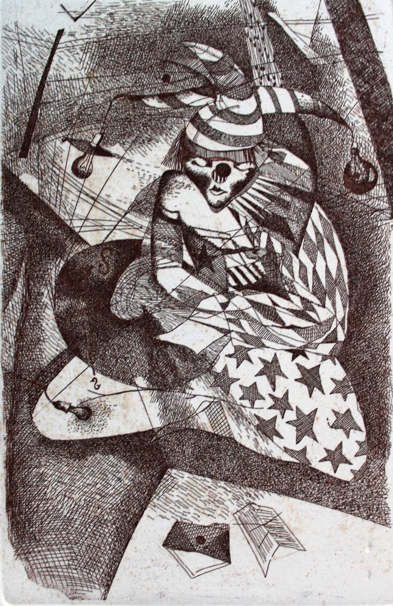 Skumjš klauns, papīrs/oforts, 15x9,5 cm, 1989.g