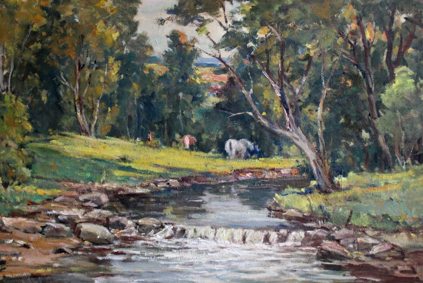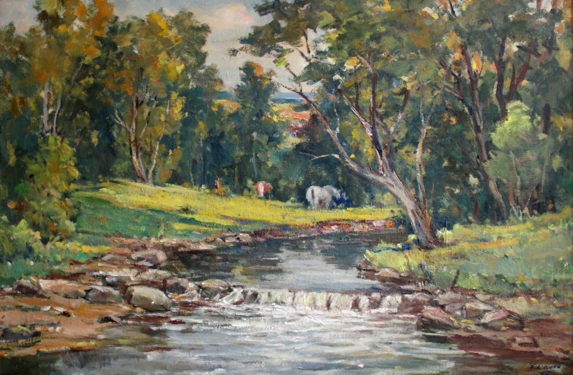 Zirgu ganības, audekls/eļļa, 68x100.cm, 1956