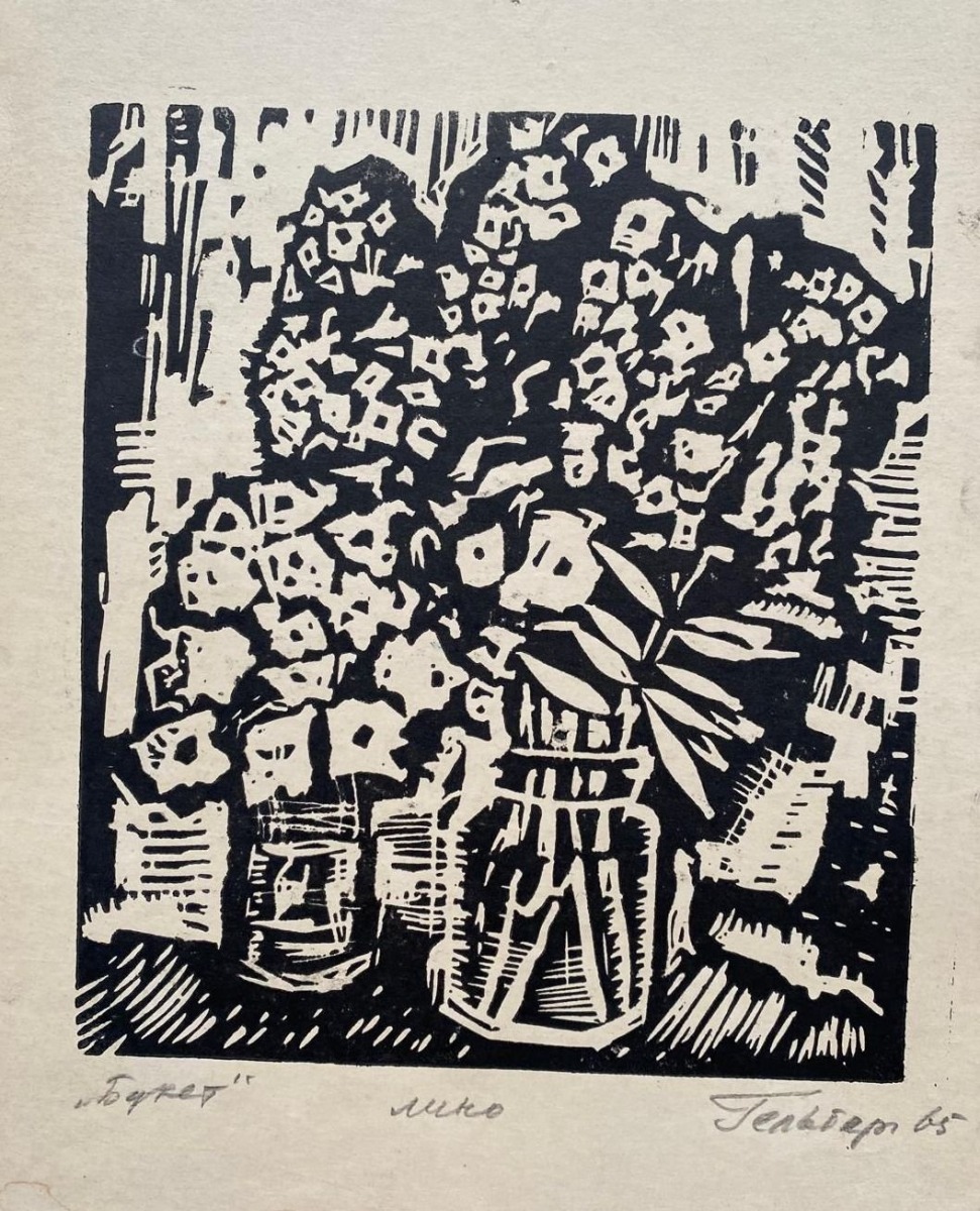 Pušķis, linogriezums, 18,5x16 cm, 1965.g