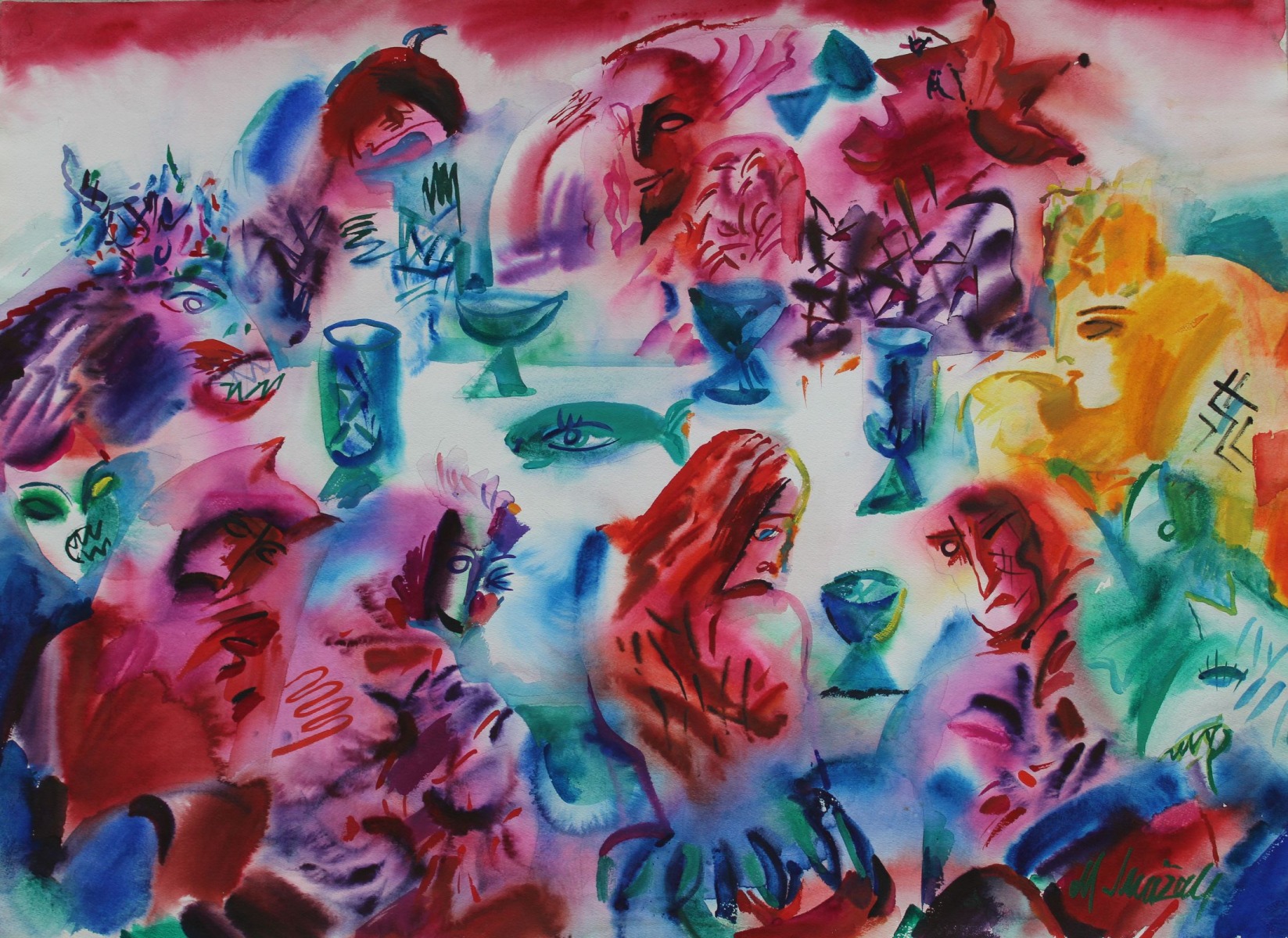 Pie galda. Papīrs, akvarelis, 55x75 cm l1574/2