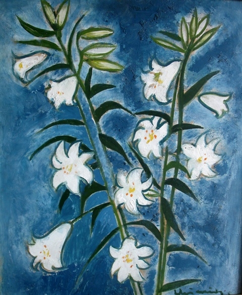 Baltās lilijas. Kartons, eļļa. 61x50 cm