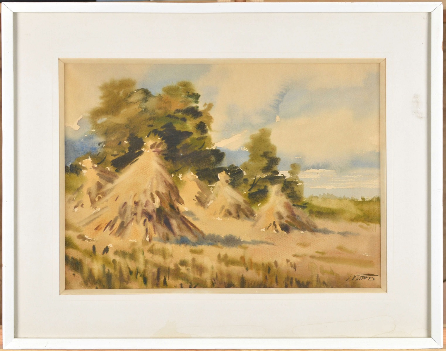 Ainava ar siena gubām. 20 gs. 70.g. Papīrs, akvarelis. 27x51 cm