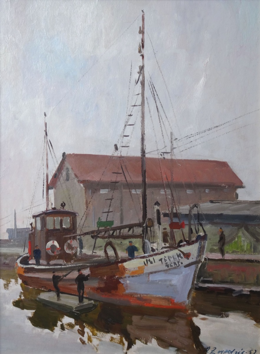 Kuģu krāsotava 1952. Kartons, eļļa. 64x48,5 cm Nr.1029 / K351 n