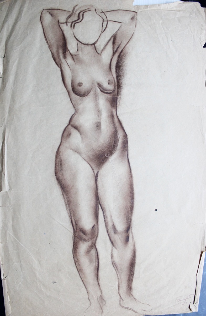 Обнажённая натура, набросок, бумага/сангина, 60x40 см