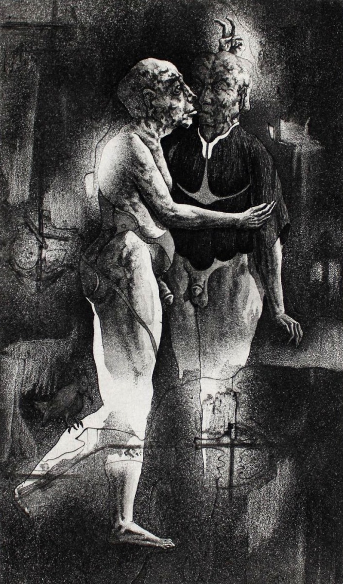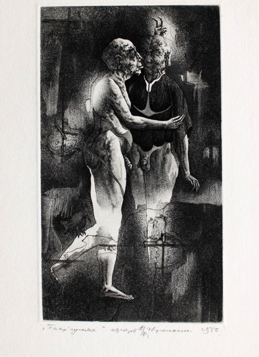 Поцелуй, бумага/офорт, 15,5x9 см, 1986