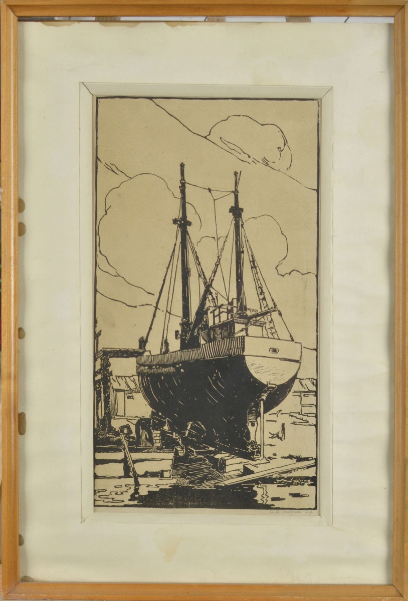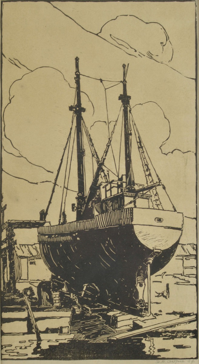 Корабль на ремонт. 1957. Гравюра. 37x20 cм