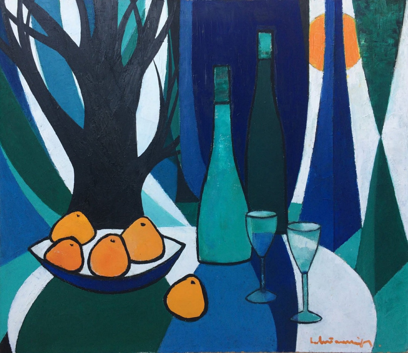 Солнце, фрукты и вино. 1997. Картон, масло. 75x84 см.